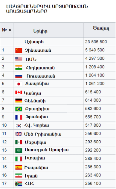 4. Քարտեզի վրա նշել այն երկրները, որոնք առաջատար են Էեկտրաէներգիայի արտադրությամբ: