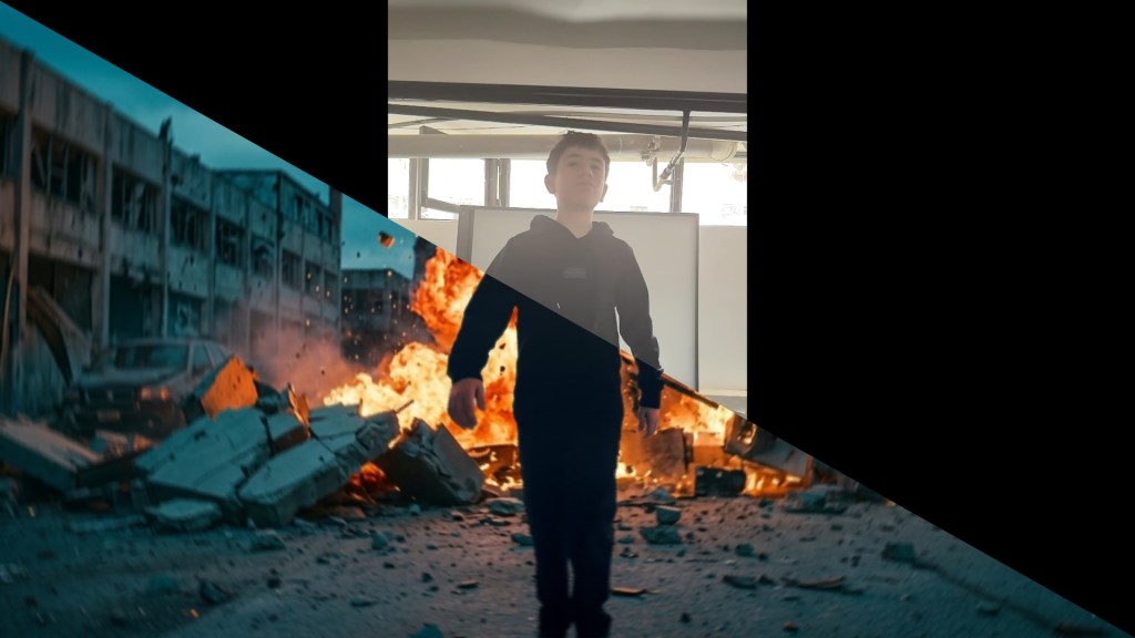 Սա տեխնիկական տեսանկյունից ավելի բարդ տեսանյութ էր, դերասանը նկարվել է մասամբ կանաչ ֆոնին, որը բավական չէր keying — ով նրան ֆոնից առանձնացնելու համար, սակայն օգնեց magic mask — ին՝ ավելի լավ նշել կիսաավտոմատ եղանակով։ Իսկ քաղաքը պարզապես pexels կայքից ներբեռնած և մշակած տեսանյութ է։ Compositing — ը արվել է DaVinci Resolve ծրագրում՝ Fusion բաժնում, դա սովորողների առաջին ծավալուն աշխատանքն է այդ ծրագրով։ Եվս մեկ կարևոր դետալ է դարձել քամու էֆեկտը, որը ստացել ենք Սարքաշինության լաբորատորիայի տրամադրած սարքի շնորհիվ։